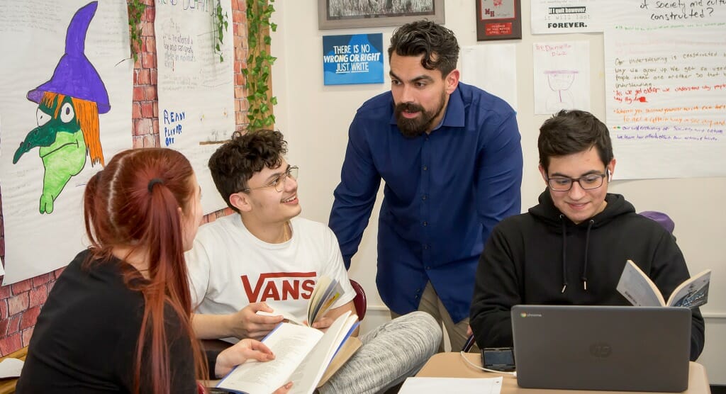 At a recent class, Jennifer Toriello, the school’s Director of Instructional Services, dropped by to watch Diaz. She was bowled over. “He was teaching sonnets. Yes, Elizabethan sonnets! It was wonderful. The kids were hooked. Somehow, he had made it cool. I haven’t seen a teacher do that before. I’m so proud of him; he pours his heart and soul into the classroom.” There is something else Toriello notices about Diaz: “He’s not just passionate about what he does. He is always looking to improve, and he has this approachable demeanor that creates a comfortable classroom environment that reaches the kids.”