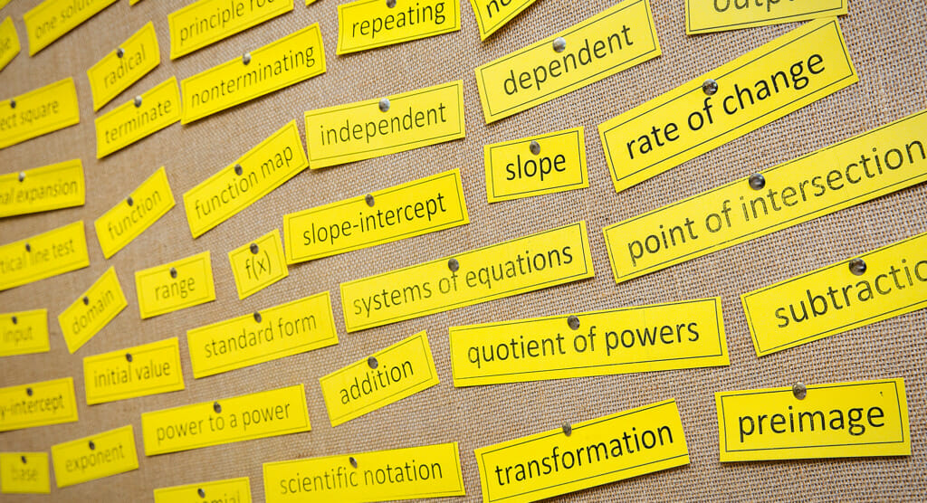 Always challenging her students’ minds, Ms. Koerner keeps them thinking through their problem solving with hands-on experience. “I’m always trying to find ways to make it real, make it engaging.” She adds, “You might have rotational partners, or you might be running around the room and doing different problems all over, or you might be forming a human number line. I have a coordinate plane on my floor so kids would graft lines with their bodies, each hold an end of a string and do Pythagorean theorem on the coordinate plane and actually create a right triangle.”