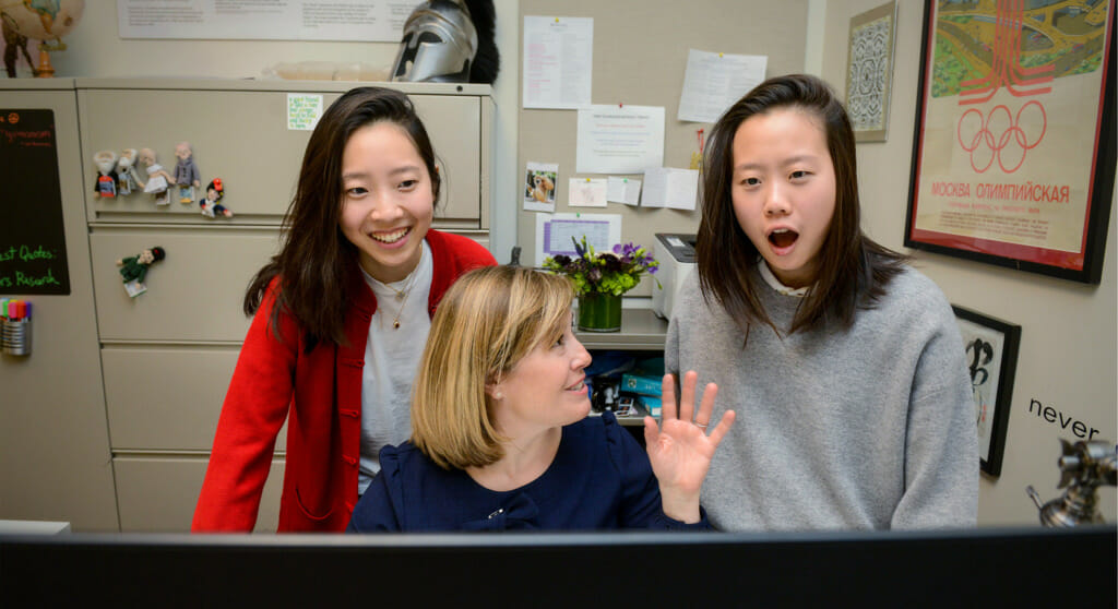 For Lauren, it was reigning in her many ideas to focus her paper on Medea. She says she can definitely speak to Ms. Atwell’s talent for treating each student as an individual. The two Yoon girls are often compared, and coming up behind an academic superstar sister is not easy. “If I go into a classroom, my pet peeve is like, ‘Oh your sister was so great!’ And they have certain expectations of me as a student and as a person, and I am very, very different from my sister. Ms. Atwell just embraces that.” Later, Ms. Atwell texts me: “I want each student to feel that I SEE her. I think it’s important to be recognized and celebrated for who you are. And for Lauren, being Alli’s sister, that was clearly really important.”