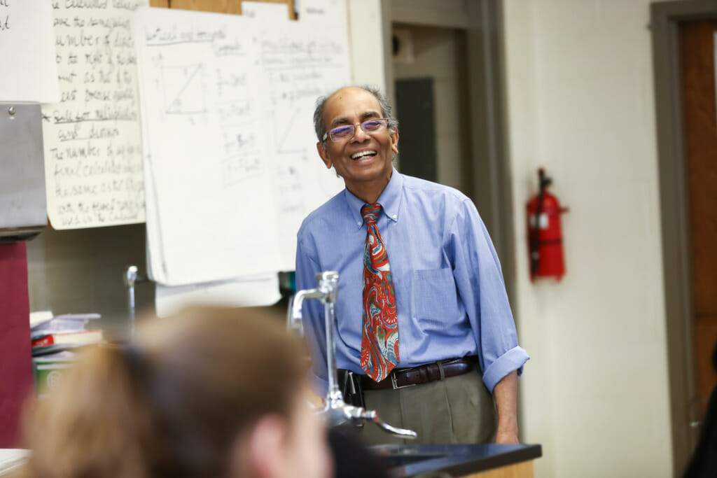 Here we are in a physics lab at Western High School, founded 1844, the oldest public all-girls school remaining in the United States. Elyathamby Vignarajah, slight and soft-spoken and wearing a tie, always wearing a tie, is leading a class in a discussion of phase changes. “How can you change a solid into a liquid?” he asks. “Let us think of ice.”