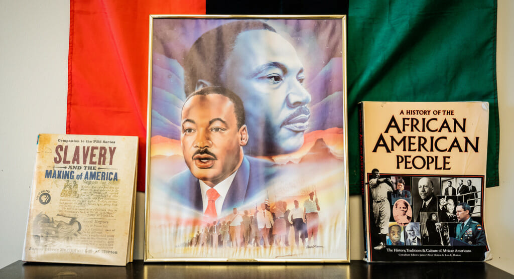 So maybe the room is more like a liberated Hogwarts; Baker, King Jr., DuBois are all enlivened voices in the space, speaking maybe not audibly, but through each of these rising leaders. Donovan is a young man familiar with the volleying attitudes and perspectives that happen in this class; his grandmother, who is 80 years old, comes from a generation in America that had one set of experiences from Jim Crow to the Civil Rights Movement, while his father has a different generational take on America and society, having experienced the “War on Drugs” time period. And then there’s Donovan, who is trying to create his own sense of identity, destiny and values, while also trying to heed the history and progress that literally hang on the wall in Jimenez’s class; to synthesize what he learns from his family and what he sees on the media and in the streets.