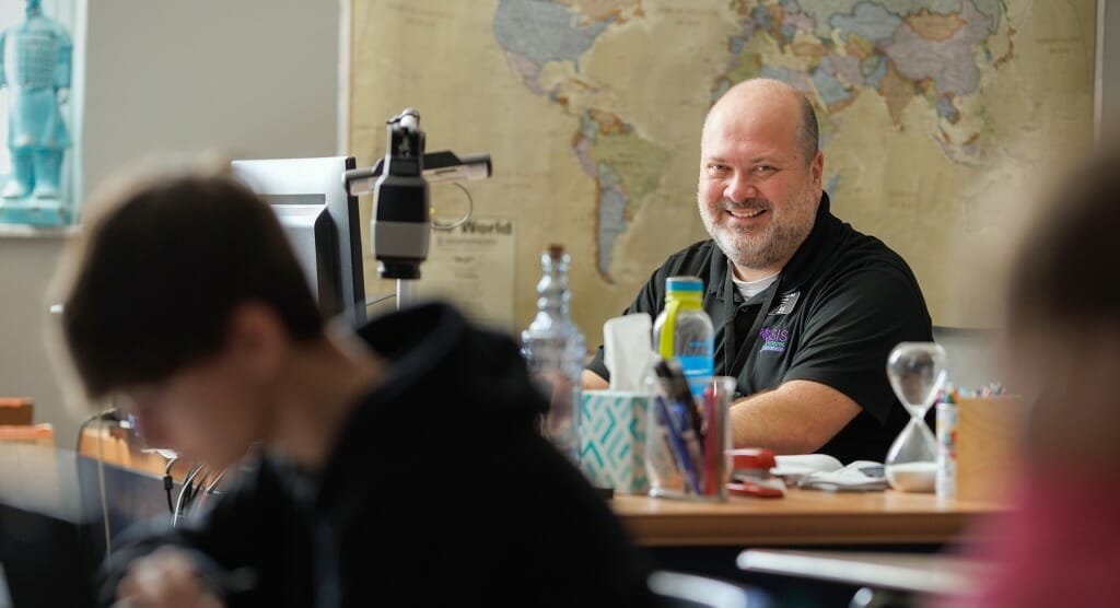He is energetic and upbeat, and his positive attitude and sense of humor can make what he does look easy. It’s not. Some days are hard, he admits, particularly during the pandemic. He calls 2020-21 the most difficult year of his teaching career. What kept him going? His students. A kind word or email or note could turn his whole day around. He treasures those. He keeps every email and letter he’s ever received (and certainly there are many, after twenty-three years) in a box, and when he’s having a tough day, or feeling discouraged, he’ll take the box out and read.