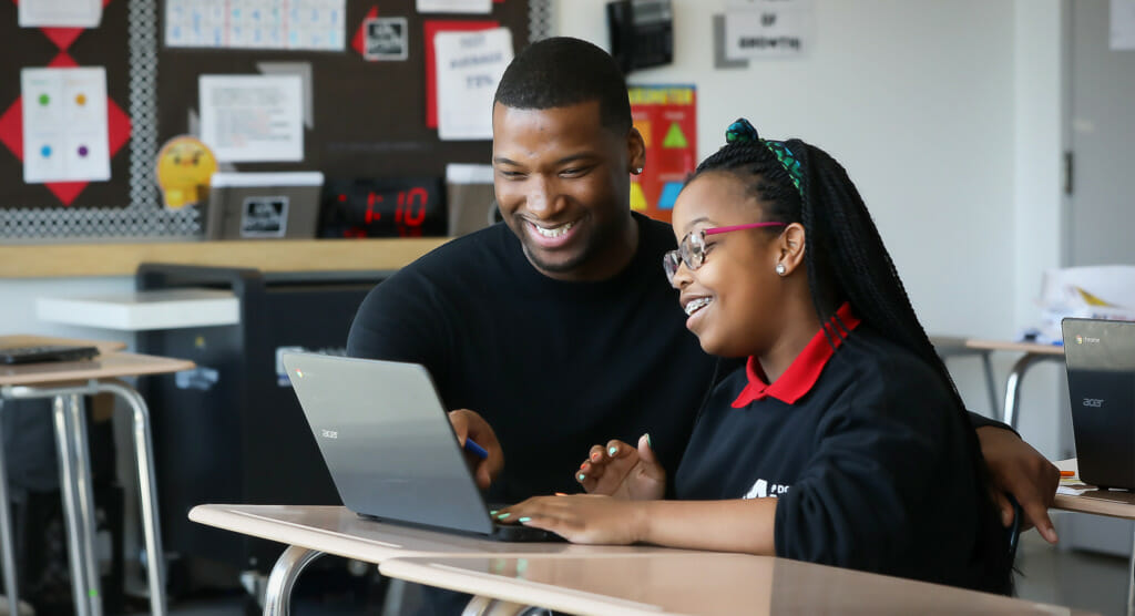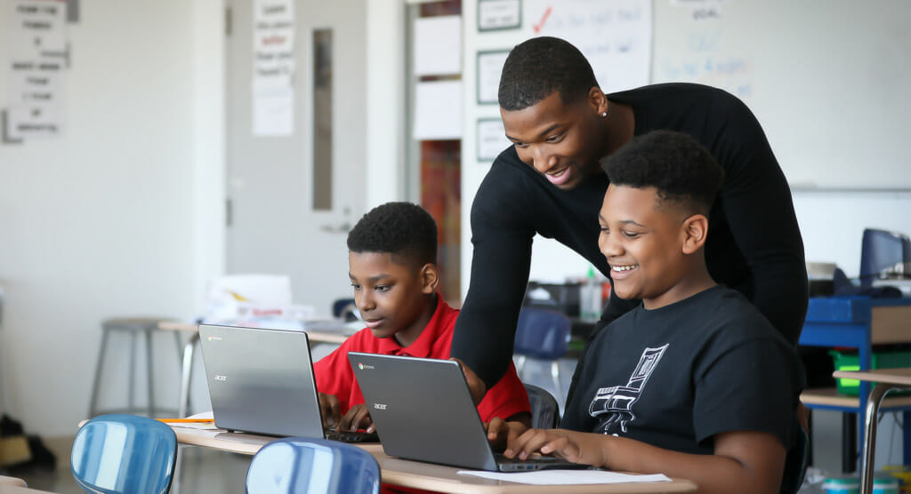 Nylah Newkirk, Da´Montae Neclos, and Dionte Edmonds fall out laughing while describing the unforgettable morning when their math teacher taught them about quadrants. There’s nothing particularly funny about Cartesian graphs, but these sixth graders are quick to tell anyone who’ll listen that this teacher knows how to make boring things exciting.
