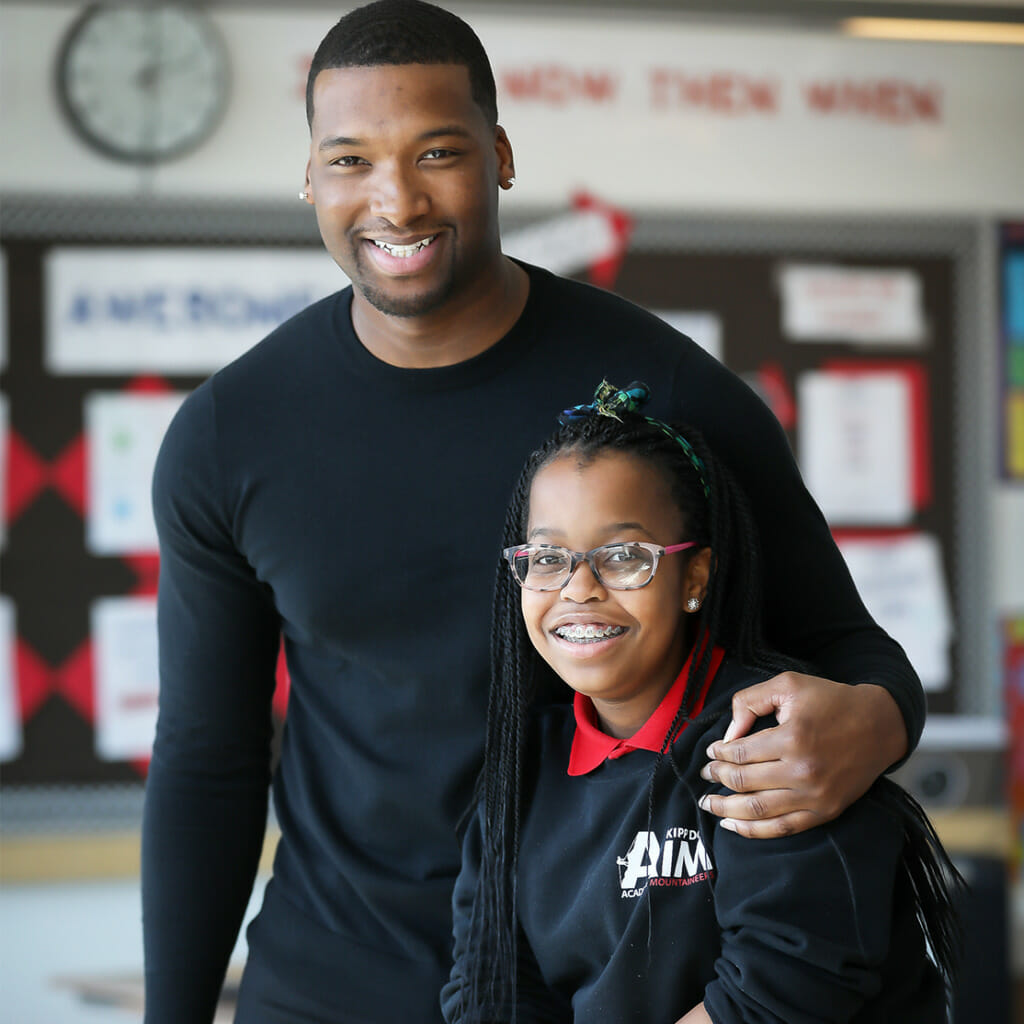 The special connection that Gilchrist shares with his middle school students at KIPP’s AIM Academy is due in large part to his own upbringing. He grew up in one of the tougher sections of Suffolk, Virginia where children often wrangled with adult-sized problems. For these students, issues at home weighed on them at school – it’s hard to focus on long division when unemployment, crime, and incarceration are taking a major toll on your community.