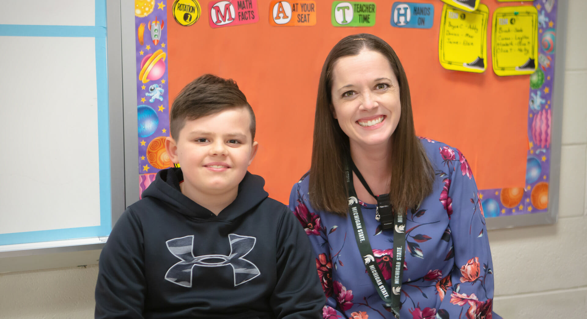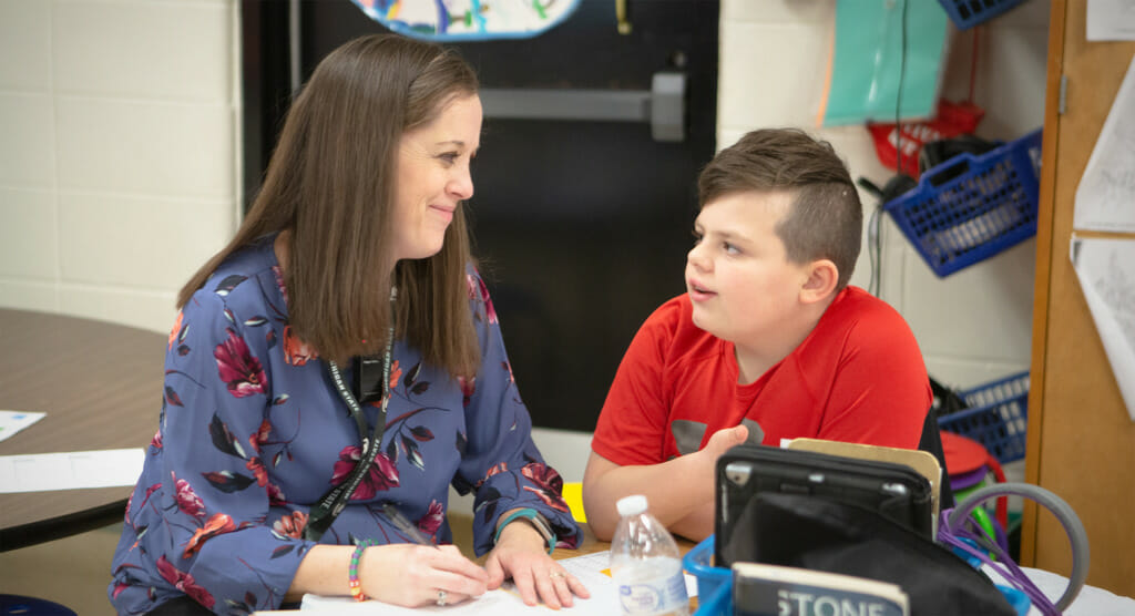“I have been astounded,” Courtney says, “by the lengths to which Mrs. Mandrelle has gone to understand what Branson is going through and to do everything in her power to help him succeed in school. A lot of teachers would say, ‘He’s just going to have to get used to how things are,’ but Mrs. Mandrelle says, ‘No. I want to get used to how he is and make things work for him.’”