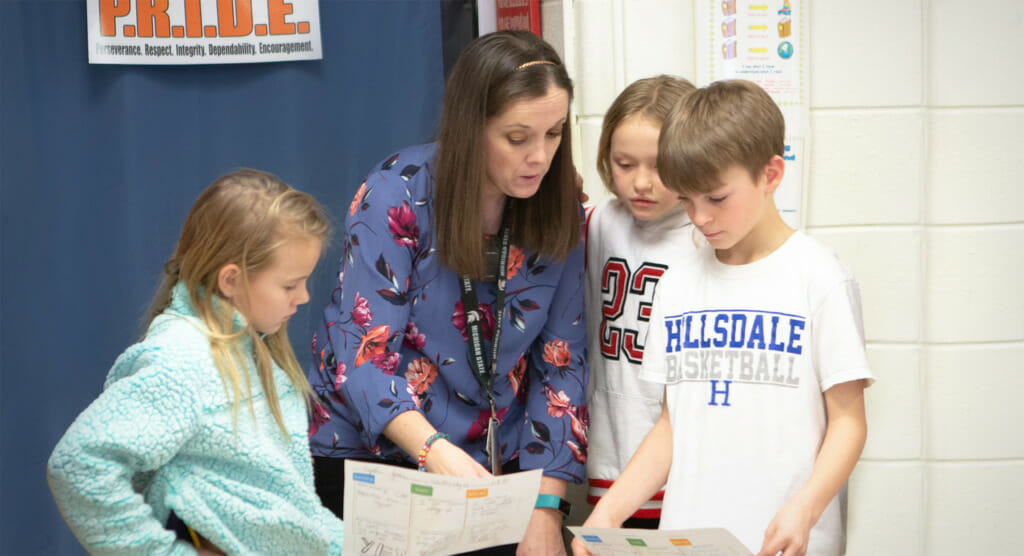 Mandrelle takes pride in knowing exactly who her students are, where they come from, and the makeup of their families. Because Williams Elementary School serves a mix of rural farm kids and professors’ kids from neighboring Hillsdale College, she cannot take a cookie cutter approach to teaching. “Some students come from a home environment filled with rich vocabulary and books from the time they’re born,” Mandrelle explains. “And then we have the ones who could tell you everything about a farm but whose houses aren’t filled with books, and they don’t have anyone who reads with them at home. I have to meet the kids where they are.”