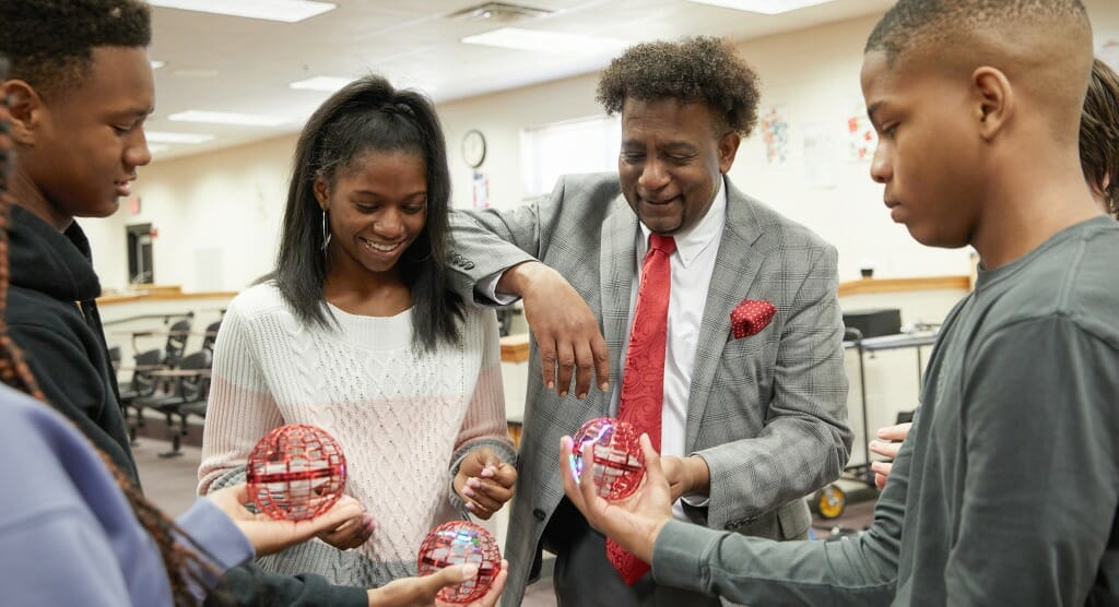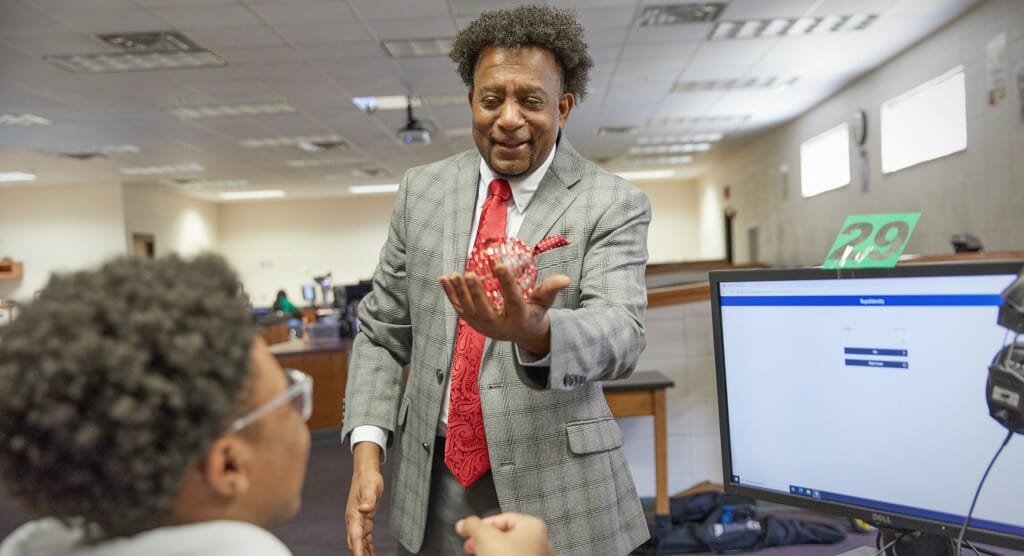 The chatty, outspoken 56-year-old works to create a space for his students to dream and believe in more than what is in front of them. He started a Technology Students Association for any student who is interested in Science, Technology, Engineering, and Math and would like to compete in competitions. He hopes the organization will get more Black students interested in STEM programs in high school and beyond.