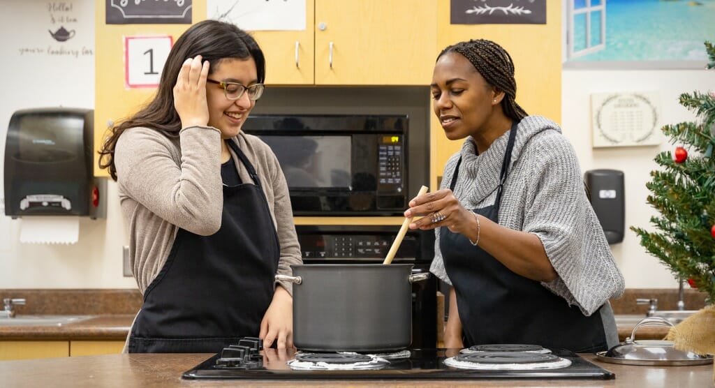 As a teacher, Tammy tries to turn every setback into an opportunity. Given the popularity of her class and current budget constraints, for example, there isn’t enough money to buy all the equipment she needs. To fill the gap, Bakewell has both paid for supplies out of pocket and called on her own childhood experiences: “When my family would get together, the adults would gather and my cousins and I would have to come up with our own games and ways to pass the time,” Bakewell remembers. “We didn’t have television or cell phones, so we cooked. We would just look in the cabinets and come up with something.”