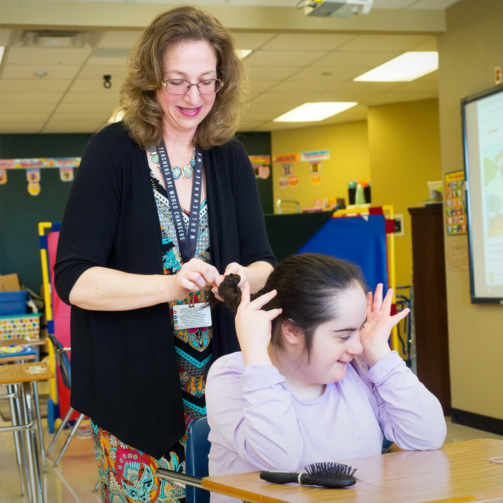 Today, Renee is one of the most beloved students at the school. And the principal hasn’t had to call home to any of the other parents … much. “I’m most proud that she’s able to have access to the general population. Before, she was completely self-contained, she couldn’t leave her classroom, couldn’t even leave her own corner of that classroom. She couldn’t interact with her classmates at all. But now she goes to the cafeteria, to inclusion classes, even to the Special Olympics. She’s part of the community.”