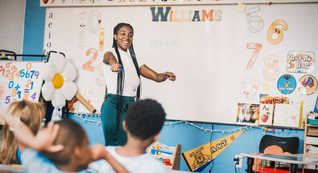 Despite her natural ability in the classroom, Williams didn’t always want to be a teacher. When she was younger, she thought about being a lawyer, or choosing a job that would provide her with more income. But she didn’t feel any passion to pursue a career just for money — and her mom had been a teacher all her life. So she brought her laptop to a college basketball game and applied to Teach for America. As soon as she started teaching, she knew she was on the path to fulfill a greater purpose.